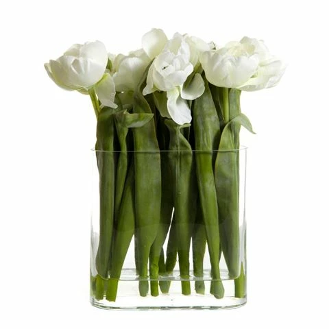 Welcome nature into your home with this stunning White Tulip Bouquet In A Glass Vase, which brings the purity and simplicity of white flowers into your space. The soft touch petals and the lush, green stems are so realistic, everyone will think they must be a fresh delivery. But unlike the real tulip’ petals, this arrangement will stay springy forever.