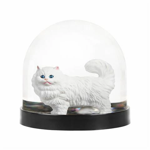- A sweet white cat stands in a dome amid a layer of sparkles.