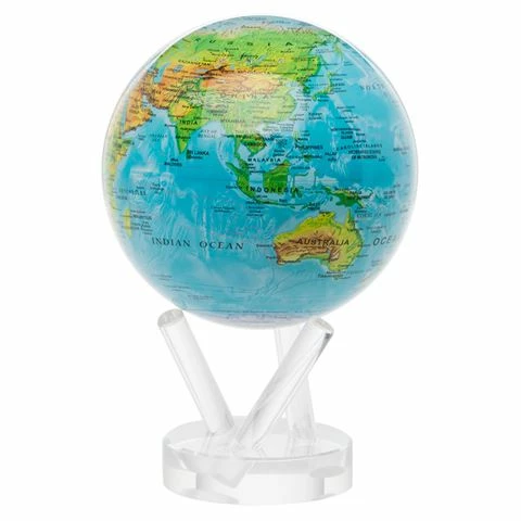 Place this beautiful little globe onto its base, and stand back. Slowly, silently, the globe will begin to turn all by itself, like our real planet Earth. Your Mova Globe needs no batteries and it doesn’t plug in to the wall – it just spins! And, no matter which way you turn it, the globe is always the right way up. Which begs the question…how does it work?